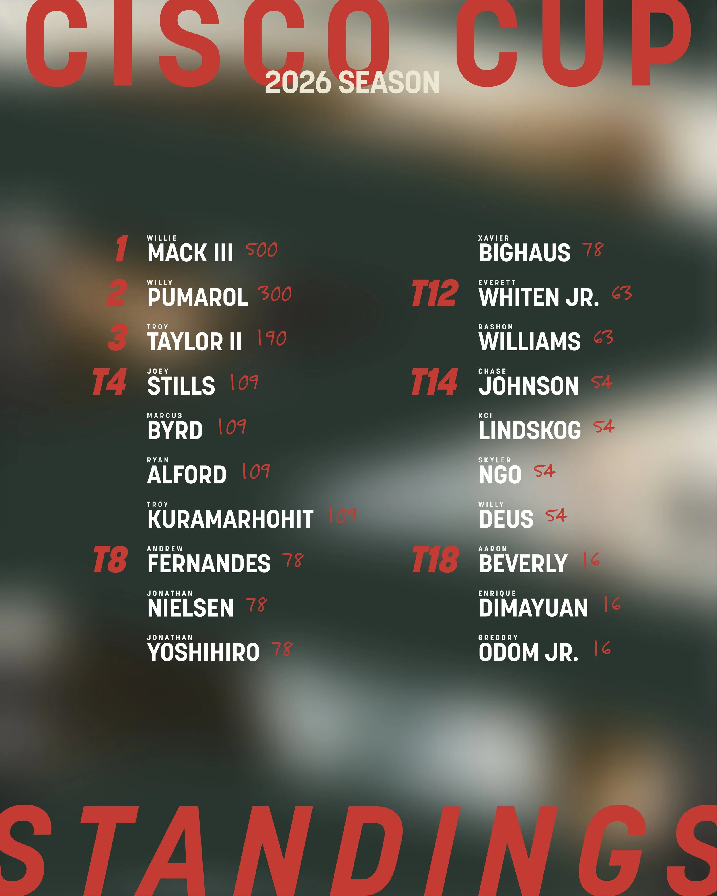 CISCO CUP STANDINGS
